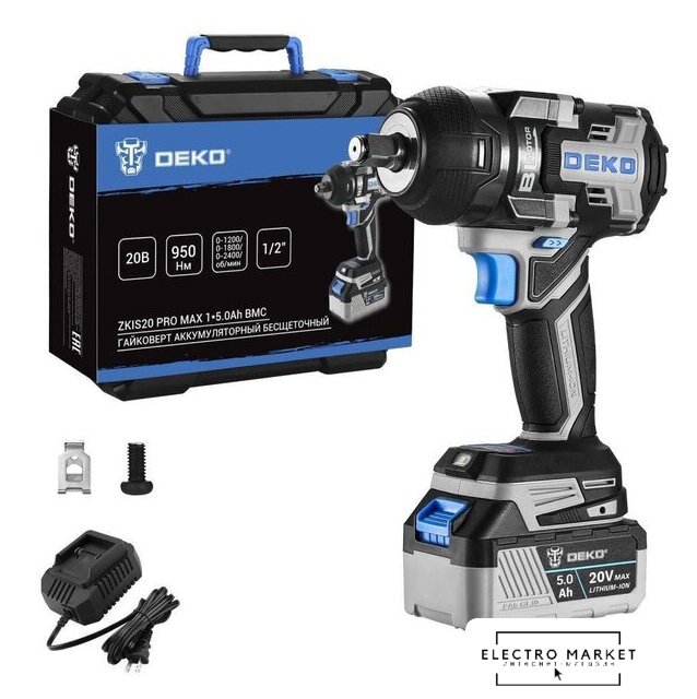 Комплектация | - Гайковерт - 1 шт.- Аккумулятор 5,0 Ач - 1 шт.- Зарядное устройство - 1 шт.- Скоба поясная - 1 шт.- Уплотнительное кольцо - 1 шт.- Штифт - 1 шт.- Руководство по эксплуатации.- Кейс. |
