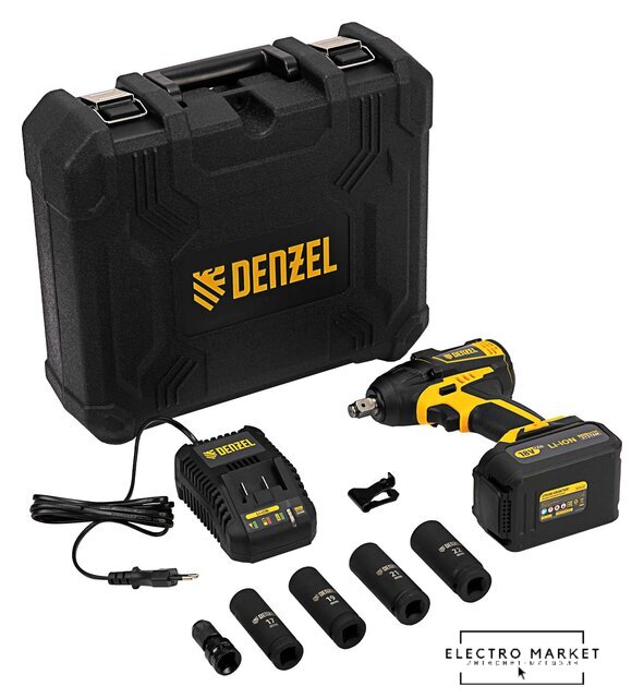 | Комплектация | 1. Гайковерт ударный аккумуляторный 1 шт.2. Батарея аккумуляторная 1 шт.3. Зарядное устройство 1 шт.4. Адаптер HEX 1/4” 1 шт.5. Головка торцевая ударная 17 мм 1 шт.6. Головка торцевая ударная 19 мм 1 шт.7. Головка торцевая ударная 21 мм 1 шт.8. Головка торцевая ударная 22 мм 1 шт. |