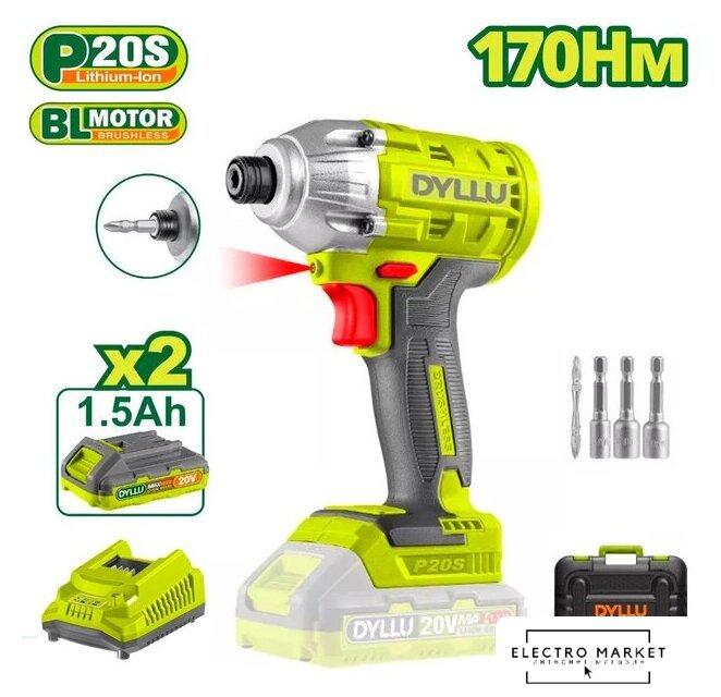 питание: аккумулятор, Li-ion, 2000 об/мин, 170 Н·м, напряжение аккумулятора: 20 В, аккумулятор в комплекте, 1440 г