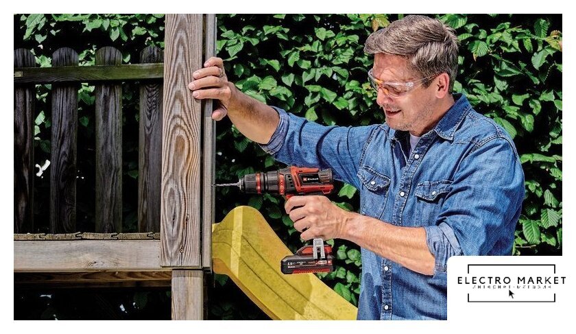 дрель-шуруповерт, аккумулятор 18V, Li-ion, патрон быстрозажимной, 2 скорости, режимы: сверление/сверление с ударом/шуруповерт