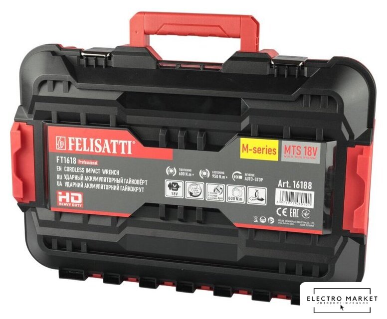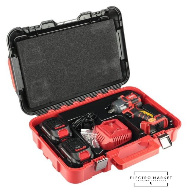 | Комплектация | - Гайковерт;, - Аккумулятор - 2 шт.;, - Зарядное устройство - 1шт.;, - Руководство по эксплуатации;, - Кейс. |