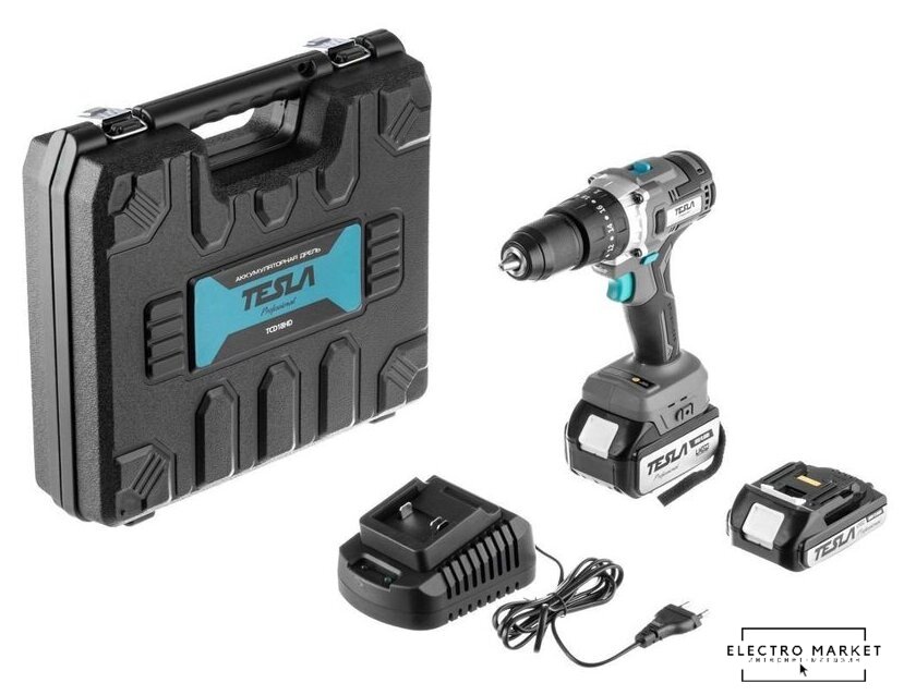 дрель-шуруповерт, аккумулятор 18V, патрон быстрозажимной, 2 скорости, режимы: сверление