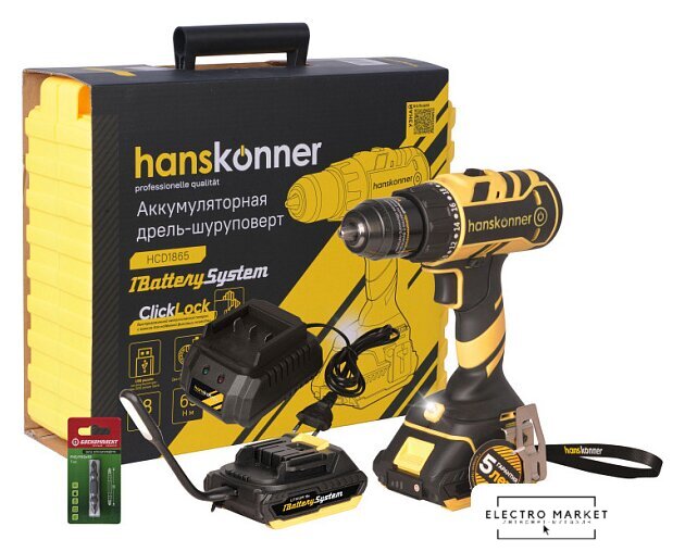 | Комплектация | - дрель-шуруповерт аккумуляторная, - аккумуляторная батарея (2шт, одна подсоединена к шуруповерту), - зарядное устройство, - двойные биты, - USB LED-фонарик, - пластиковый кейс |