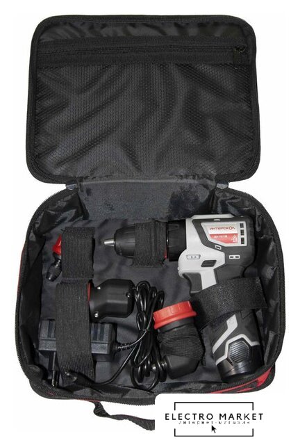 Комплектация | - Сумка- АКБ 2 а/ч - 2 шт - Зарядное устройство- Патрон БЗП- Эксцентриковая насадка- Угловая насадка- Насадка мех. фиксации HEX 1/4” |