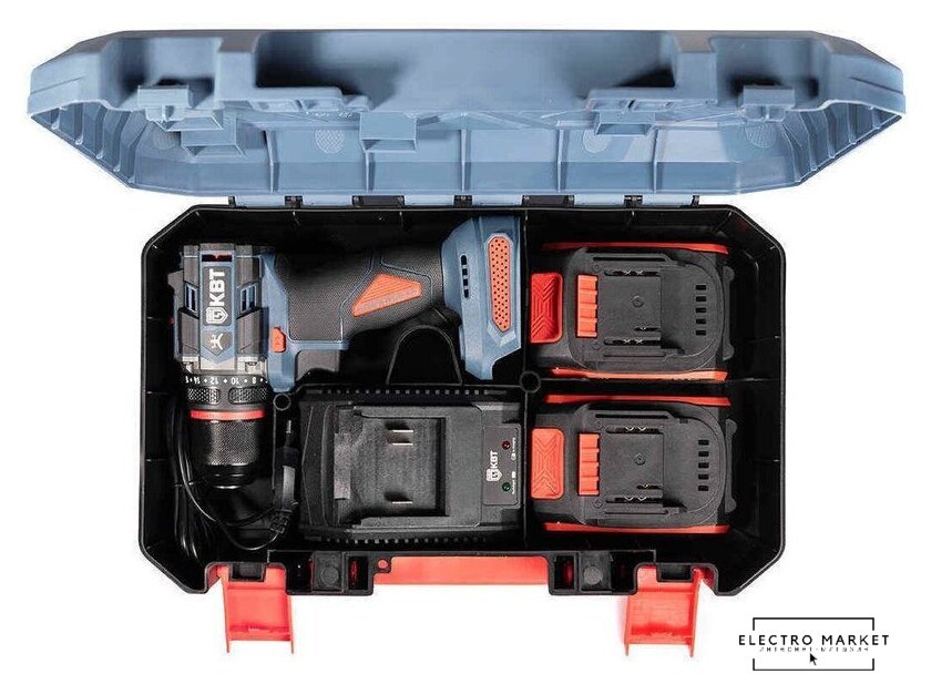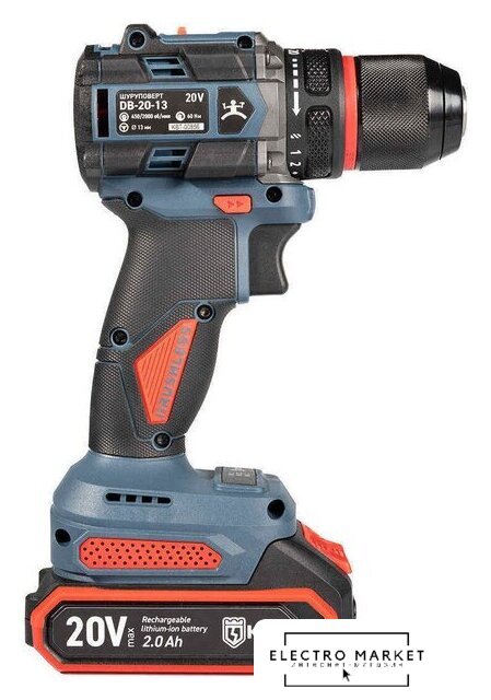| Комплектация | - аккумуляторный шуруповерт DB-20–13, - 2 аккумуляторные батареи: Li-Ion, 20 В/2Ач, - зарядное устройство от сети 230 В, - прочный пластиковый кейс |