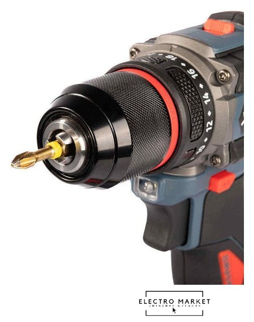 дрель-шуруповерт, аккумулятор 18V, патрон быстрозажимной, 2 скорости, режимы: сверление/сверление с ударом/шуруповерт
