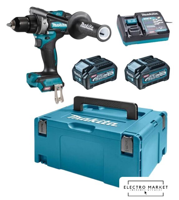 Комплектация | - дрель-шуроповерт- 2 аккумулятора BL4040 4,0 Ач;- Зарядное устройство DC40RA;- (+/-) бита №2;- Боковая рукоятка;;- Крючок крепления на ремень;- Кейс Makpac 3. |