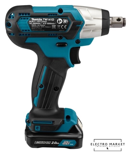 ударный гайковерт, аккумулятор 12V, Li-ion, патрон четырехгранник, 2 скорости, режимы: гайковерт
