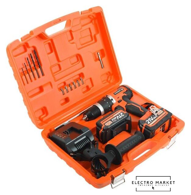 | Комплектация | - дополнительная рукоятка- ограничитель глубины сверления- зарядное устройство- 2 аккумулятора (21В/4А)- 6 сверл- 6 бит- адаптер для бит- документацияПоставляется в пластиковом кейсе |