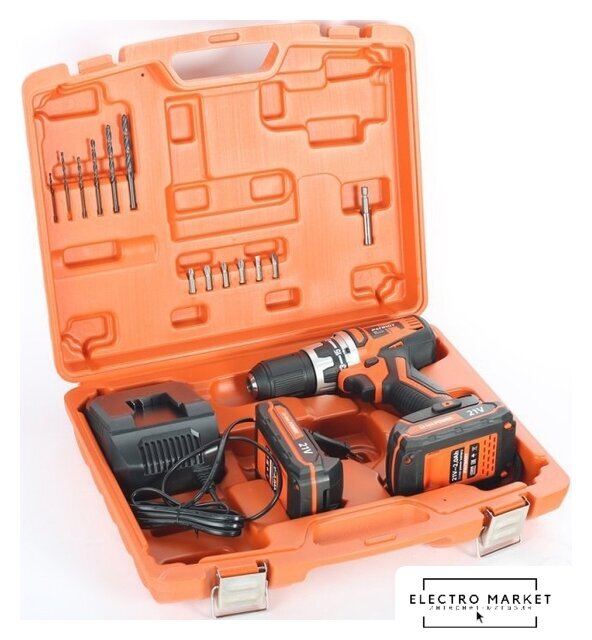 дрель-шуруповерт, аккумулятор 18V, патрон быстрозажимной, 2 скорости, режимы: сверление/шуруповерт