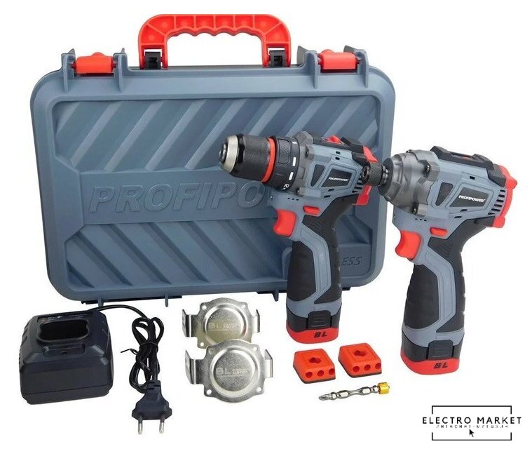 | Комплектация | - Шуруповерт 40Нм - 1шт;- Зарядное устройство 2А - 1шт;- Аккумулятор 2.0 Ач - 2шт;- Магнитная бита - 1шт;- Патрон кулачковый - 1шт;- Эксцентриковая насадка - 1шт;- Угловая насадка - 1шт;- Насадка для шуруповерта с механическим зажимом - 1шт;- Поясное крепление-держатель бит - 1шт;- Кейс - 1 шт;- Инструкция - 1шт. |