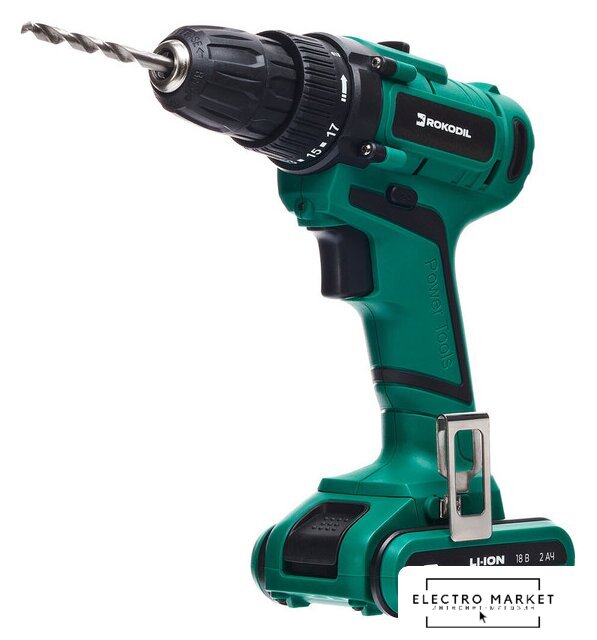 дрель-шуруповерт, аккумулятор 18V, Li-ion, патрон быстрозажимной, 2 скорости, режимы: сверление/шуруповерт