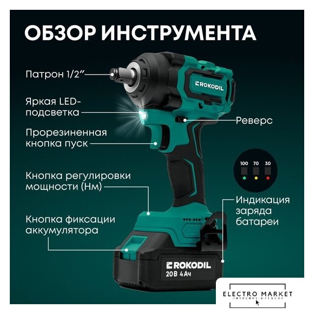 питание: аккумулятор, Li-ion, 2400 об/мин, 420 Н·м, напряжение аккумулятора: 18 В, ёмкость аккумулятора: 4 А·ч, аккумулятор в комплекте, 1150 г