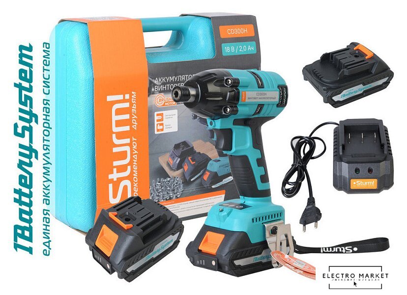 Комплектация | Винтоверт, аккумуляторная батарея (2 шт), зарядное устройство, поясной крюк, винт крепления поясного крюка, инструкция по эксплуатации, инструкция по безопасности, кейс |