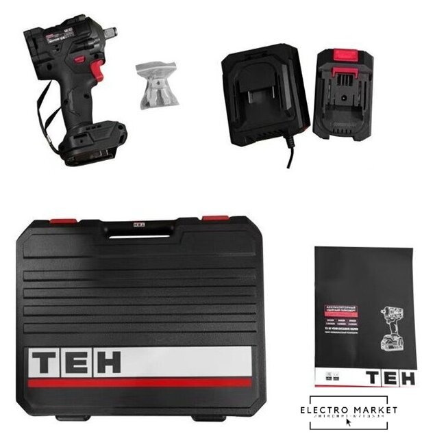 | Комплектация | - Аккумуляторный ударный гайковерт;, - Аккумуляторная батарея 4Ач.;, - Зарядное устройство;, - Руководство по эксплуатации;, - Кейс. |