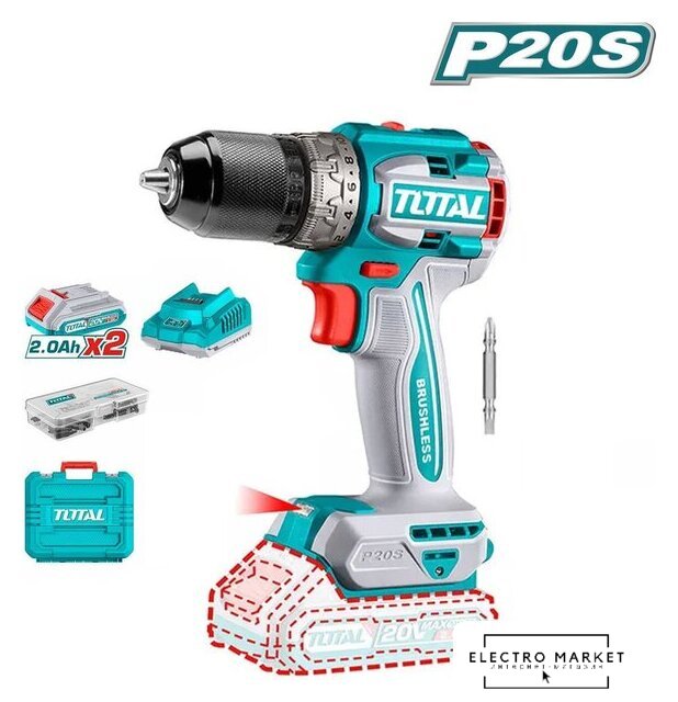 | Комплектация | - Дрель-шуруповерт - 1 шт.- Аккумулятор 2,0 А*ч - 2 шт.- Быстрое зарядное устройство - 1 шт.- Двухсторонняя бита - 1 шт.- Набор оснастки и крепежа - 47 шт.- Инструкция- Кейс |
