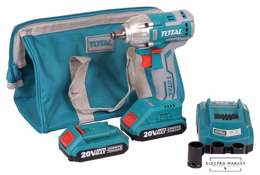 Комплектация | - Гайковёрт- 2 аккумулятора- Зарядное устройство- Сумка |