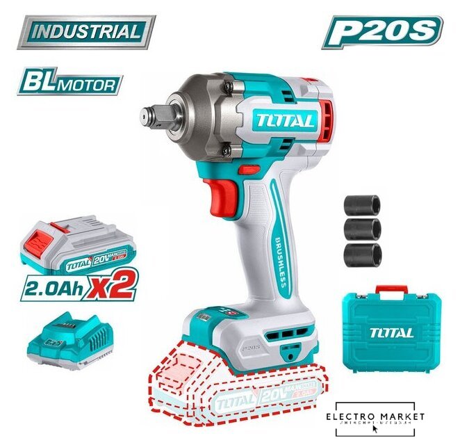 питание: аккумуляторный, Li-ion, 2300 об/мин, 300 Н·м, напряжение аккумулятора: 20 В, ёмкость аккумулятора: 2 А·ч, аккумулятор в комплекте, 1200 г