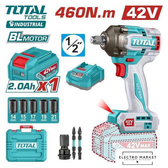 | Комплектация | - Гайковерт - 1 шт., - Аккумулятор 2,0 Ач TFBLI42201 - 1 шт., - Зарядное устройство TFCLI42021 - 1 шт., - Ударные головки (14, 15, 17, 19, 21 мм) - 5 шт., - Переходник 1/2" квадрат → 1/4" HEX - 1 шт., - Биты - 2 шт., - Инструкция, - Кейс |
