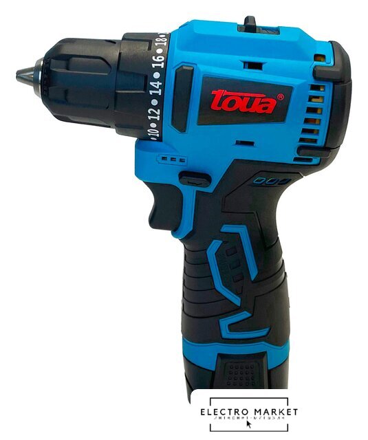 дрель-шуруповерт, аккумулятор 12V, патрон быстрозажимной, 2 скорости, режимы: сверление/сверление с ударом/шуруповерт