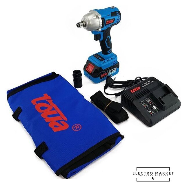 Комплектация | - Гайковерт;- Аккумуляторная батарея - 1 шт.- Зарядное устройство;- Сумка;- Инструкция - 2 шт;- Подвесная стропа;- Торцевая насадка 22 мм. |
