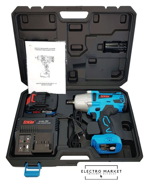 питание: аккумулятор, Li-ion, 2300 об/мин, 400 Н·м, напряжение аккумулятора: 18 В, ёмкость аккумулятора: 4 А·ч, аккумулятор в комплекте, 2600 г