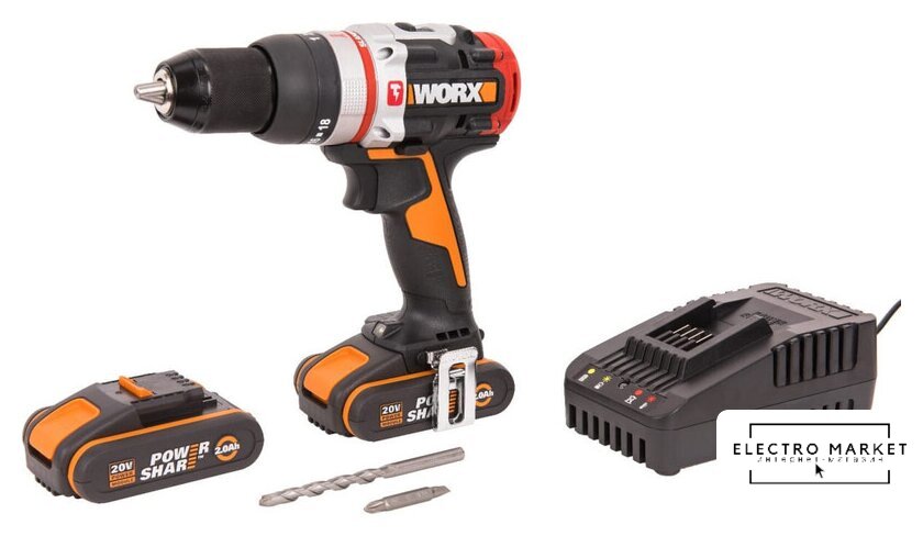 Комплектация | Дрель-шуруповерт WORX WX3542 аккумулятора Li-Ion емкостью 2 А*чЗарядное устройство WORX 2АДвусторонняя битаКрюкЗажим для сверлаКейс |