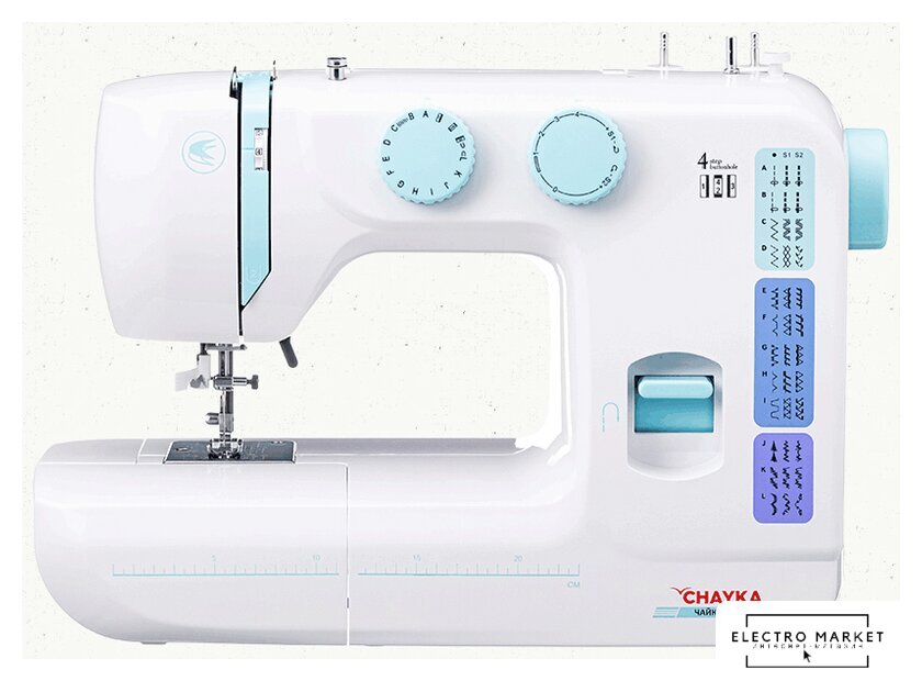 электромеханическая, вертикальный качающийся челнок, полуавтоматическое выполнение петли, швейные операции: потайная строчка/трикотажная строчка/декоративная строчка/оверлочная строчка