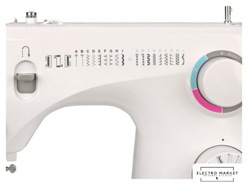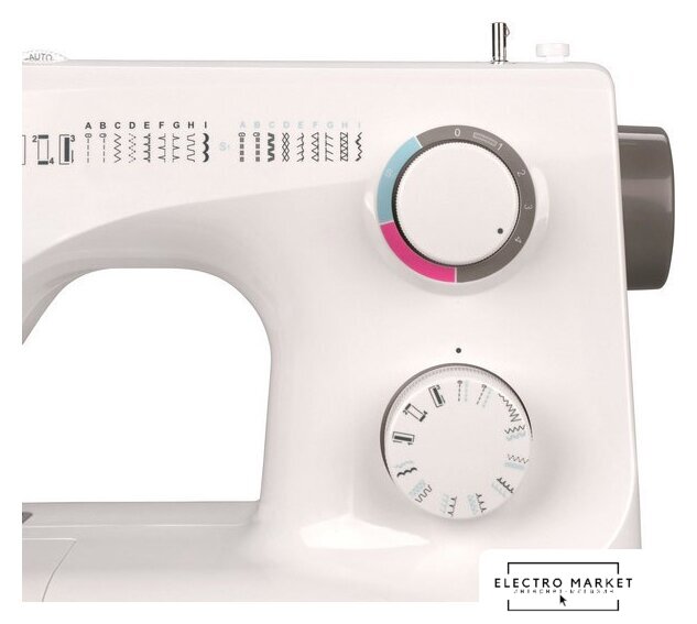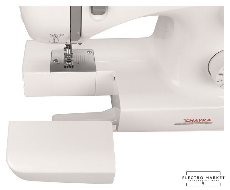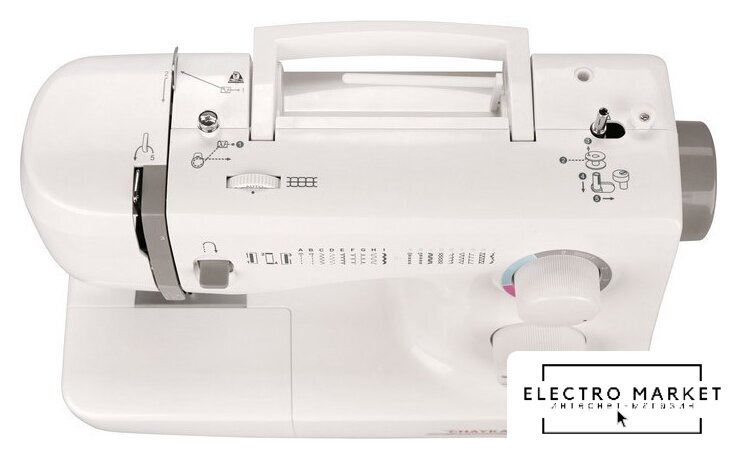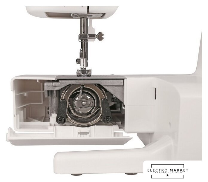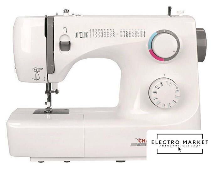 электромеханическая, вертикальный качающийся челнок, полуавтоматическое выполнение петли, швейные операции: имитация оверлочной строчки/потайная строчка/трикотажная строчка/декоративная строчка