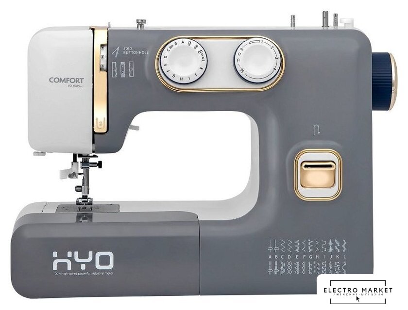 электронная, вертикальный качающийся челнок, автоматическое выполнение петли, швейные операции: имитация оверлочной строчки/потайная строчка/трикотажная строчка/декоративная строчка