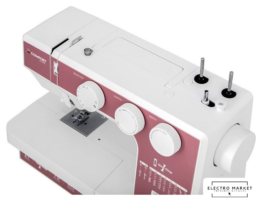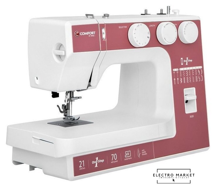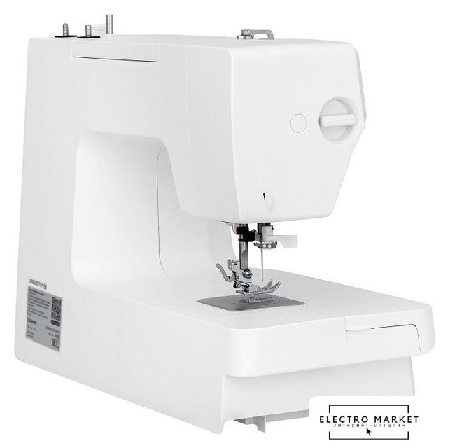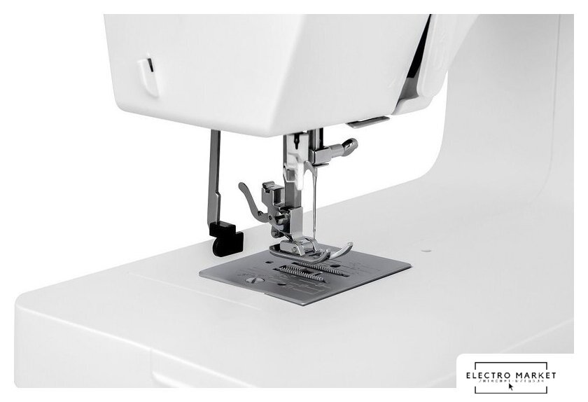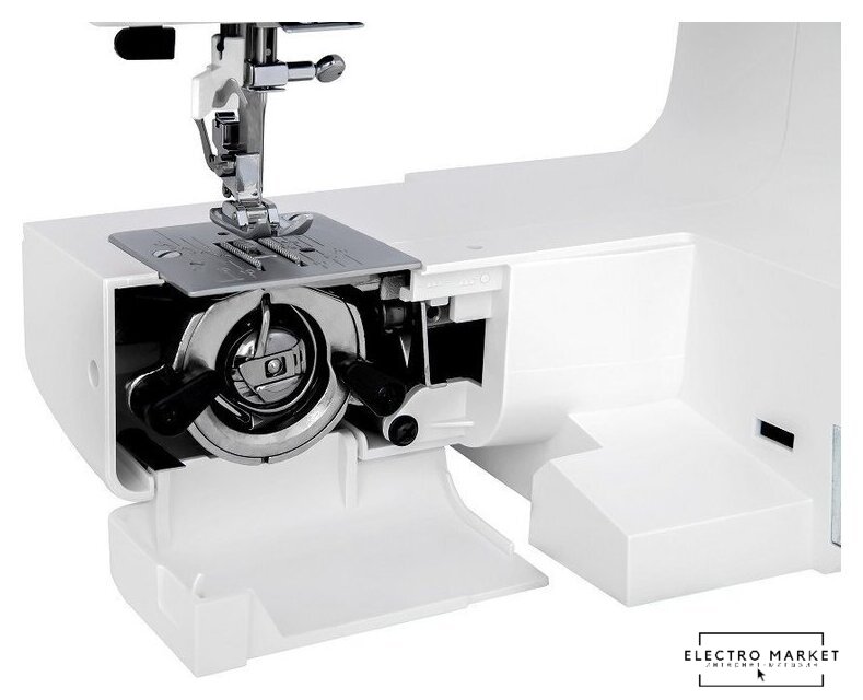 электромеханическая, вертикальный качающийся челнок, полуавтоматическое выполнение петли, швейные операции: имитация оверлочной строчки/потайная строчка/трикотажная строчка/декоративная строчка