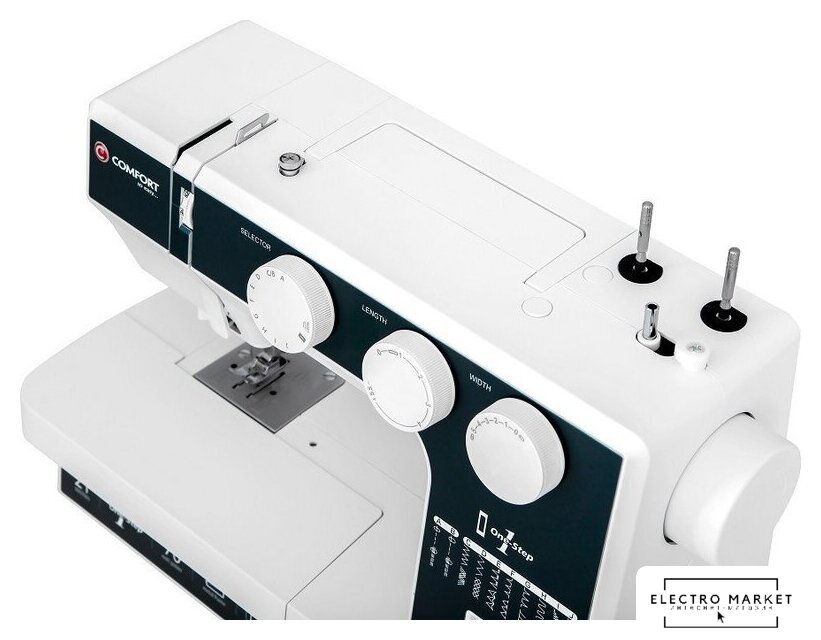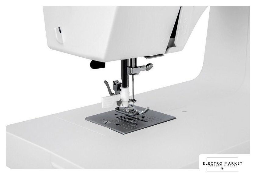 электромеханическая, вертикальный качающийся челнок, полуавтоматическое выполнение петли, швейные операции: имитация оверлочной строчки/потайная строчка/трикотажная строчка/декоративная строчка