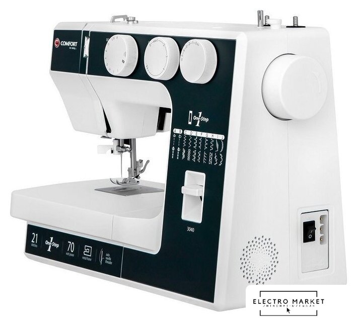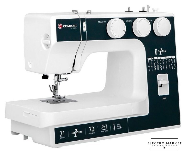 электромеханическая, вертикальный качающийся челнок, полуавтоматическое выполнение петли, швейные операции: потайная строчка/трикотажная строчка/оверлочная строчка