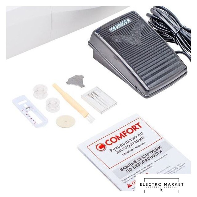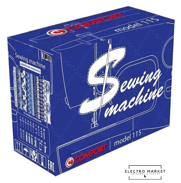 электромеханическая, вертикальный качающийся челнок, полуавтоматическое выполнение петли, швейные операции: потайная строчка/трикотажная строчка/декоративная строчка/оверлочная строчка