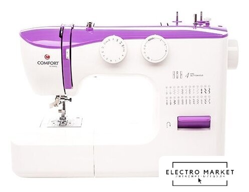 электромеханическая, вертикальный качающийся челнок, полуавтоматическое выполнение петли, швейные операции: имитация оверлочной строчки/декоративная строчка