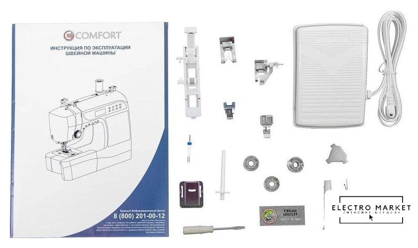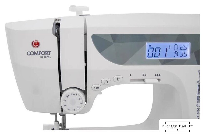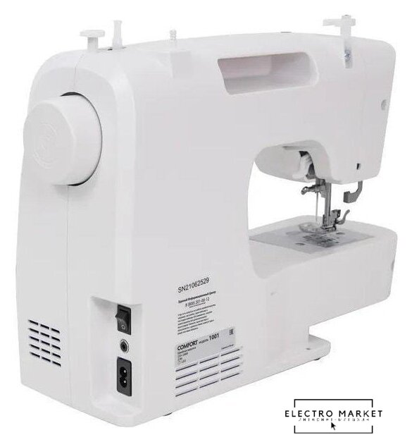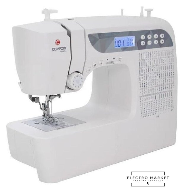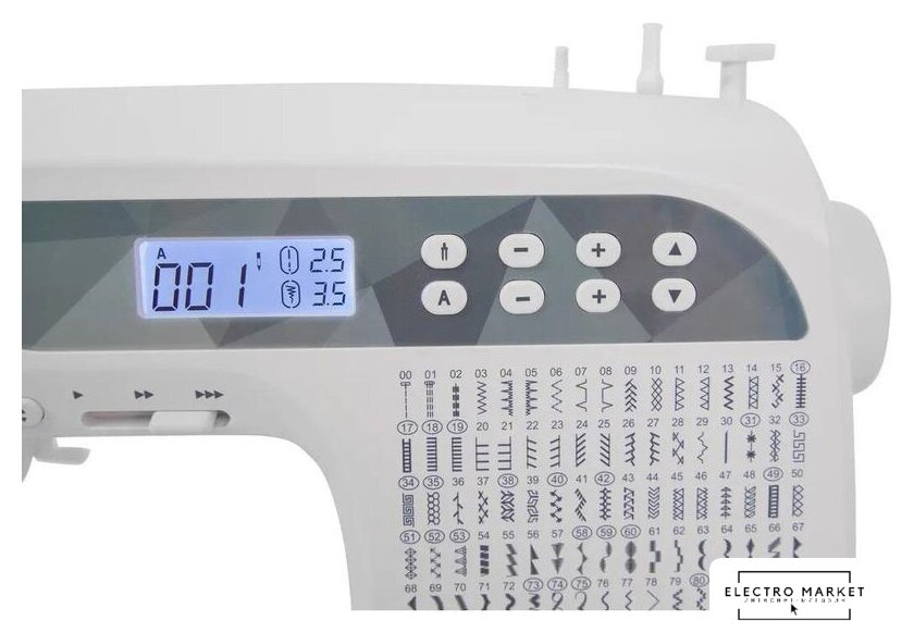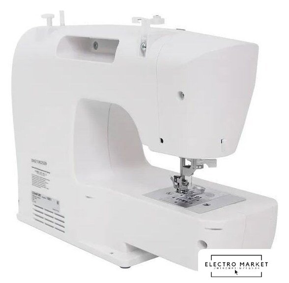 электромеханическая, вертикальный качающийся челнок, автоматическое выполнение петли, швейные операции: имитация оверлочной строчки/потайная строчка/трикотажная строчка/декоративная строчка
