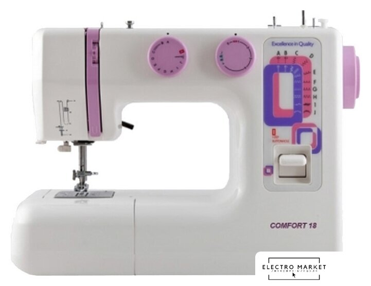 электромеханическая, вертикальный качающийся челнок, полуавтоматическое выполнение петли, швейные операции: имитация оверлочной строчки/потайная строчка/трикотажная строчка