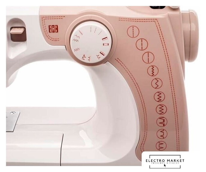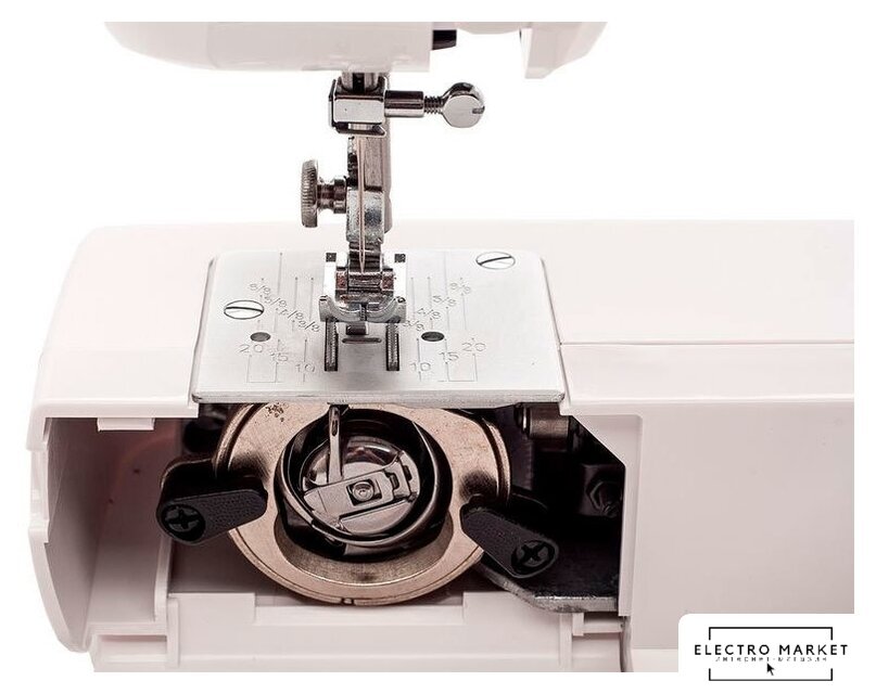 электромеханическая, вертикальный качающийся челнок, полуавтоматическое выполнение петли, швейные операции: имитация оверлочной строчки/потайная строчка/трикотажная строчка/декоративная строчка