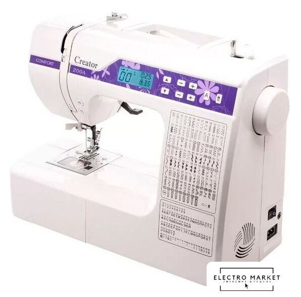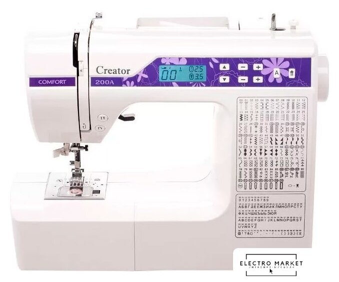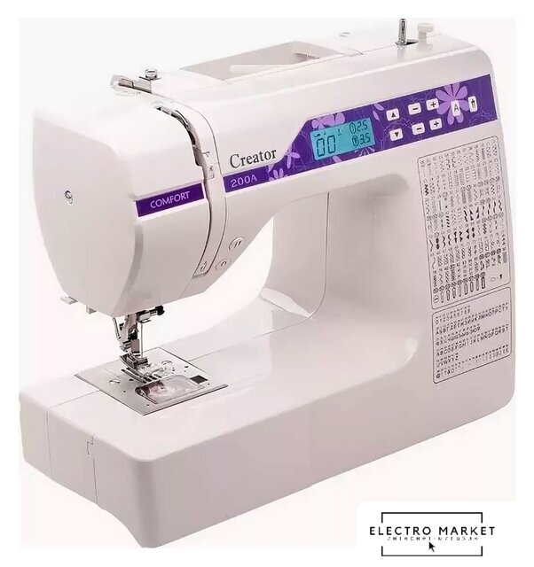 электронная, вертикальный качающийся челнок, автоматическое выполнение петли, швейные операции: имитация оверлочной строчки/потайная строчка/трикотажная строчка/декоративная строчка