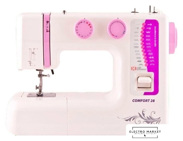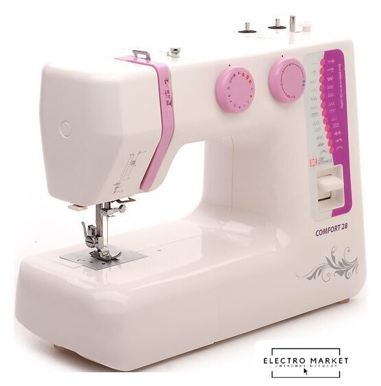 электромеханическая, вертикальный качающийся челнок, полуавтоматическое выполнение петли, швейные операции: имитация оверлочной строчки/потайная строчка/трикотажная строчка