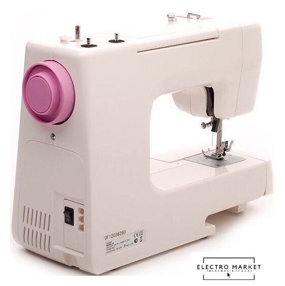 электромеханическая, вертикальный качающийся челнок, полуавтоматическое выполнение петли, швейные операции: имитация оверлочной строчки/декоративная строчка