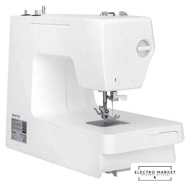 электромеханическая, вертикальный качающийся челнок, автоматическое выполнение петли, швейные операции: имитация оверлочной строчки/потайная строчка/трикотажная строчка/декоративная строчка