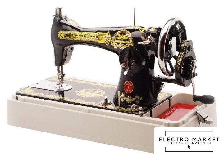 электромеханическая, вертикальный качающийся челнок, полуавтоматическое выполнение петли, швейные операции: имитация оверлочной строчки/потайная строчка/трикотажная строчка/декоративная строчка