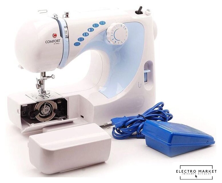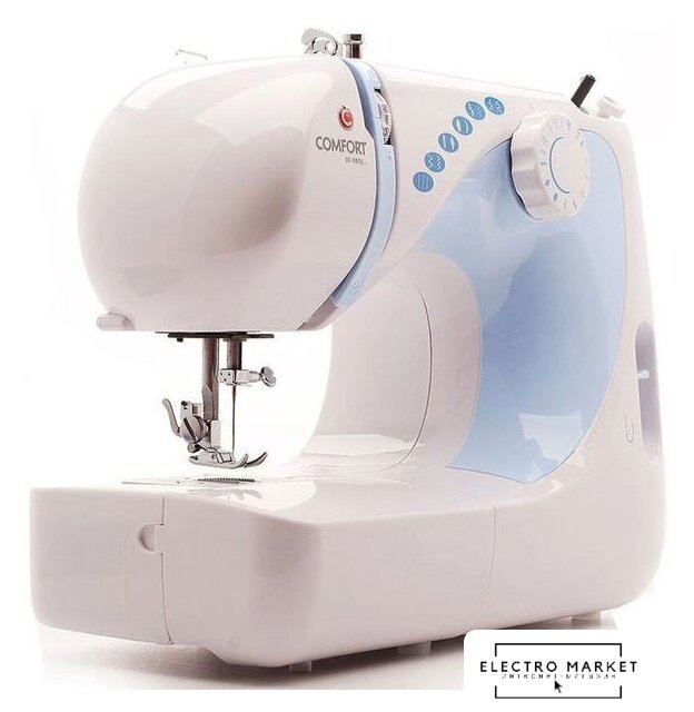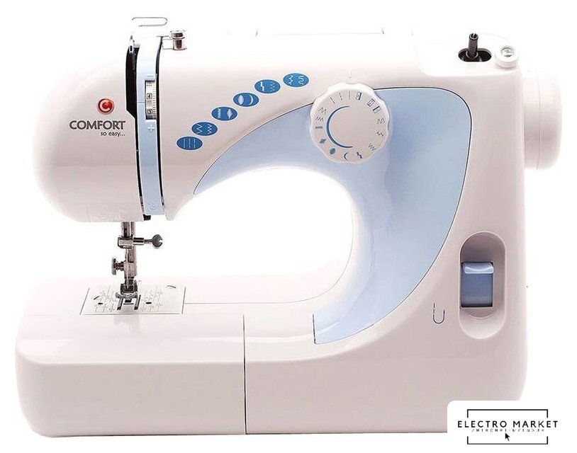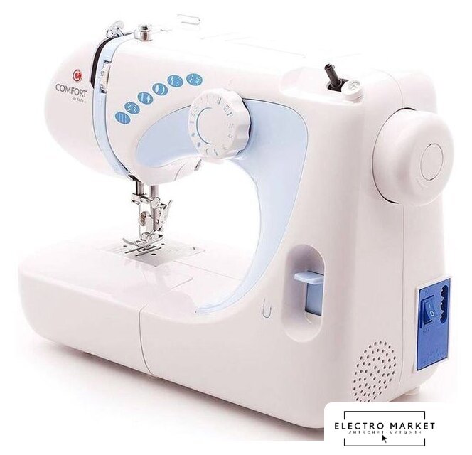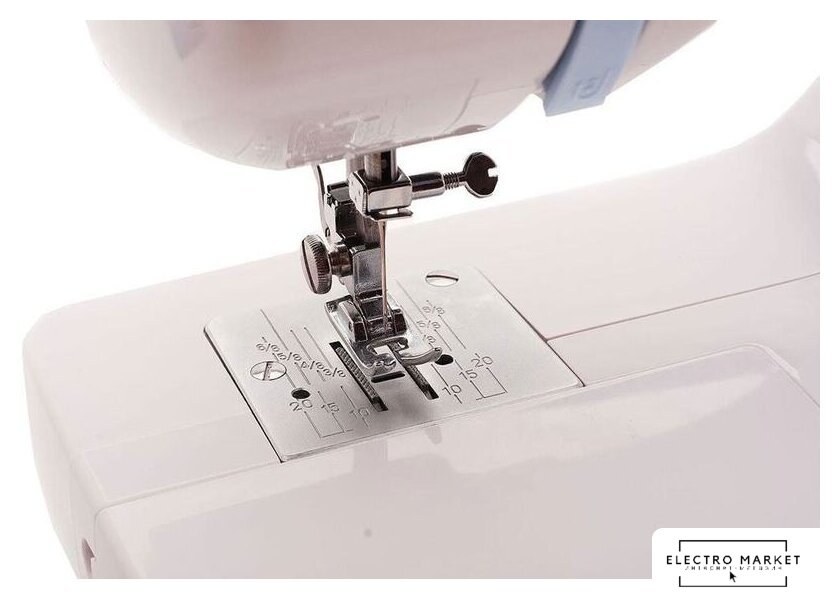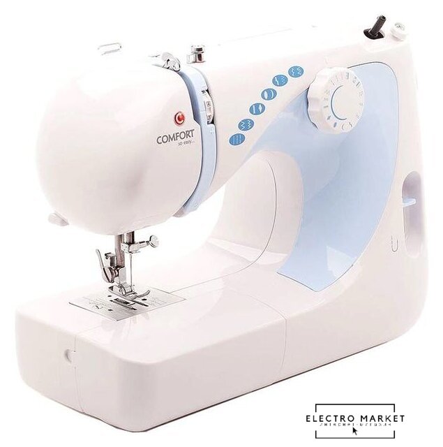 электромеханическая, вертикальный качающийся челнок, полуавтоматическое выполнение петли, швейные операции: имитация оверлочной строчки/потайная строчка/трикотажная строчка/декоративная строчка