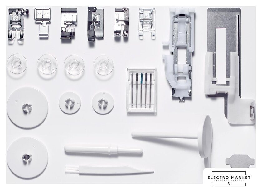 | Лапки | универсальная, для вшивания молнии, оверлочная, для потайной строчки, для обработки края |