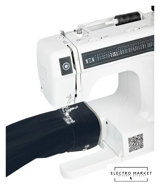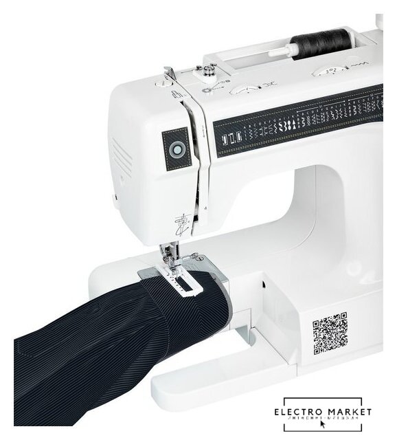 электромеханическая, вертикальный качающийся челнок, полуавтоматическое выполнение петли, швейные операции: имитация оверлочной строчки/потайная строчка/трикотажная строчка