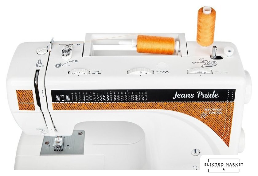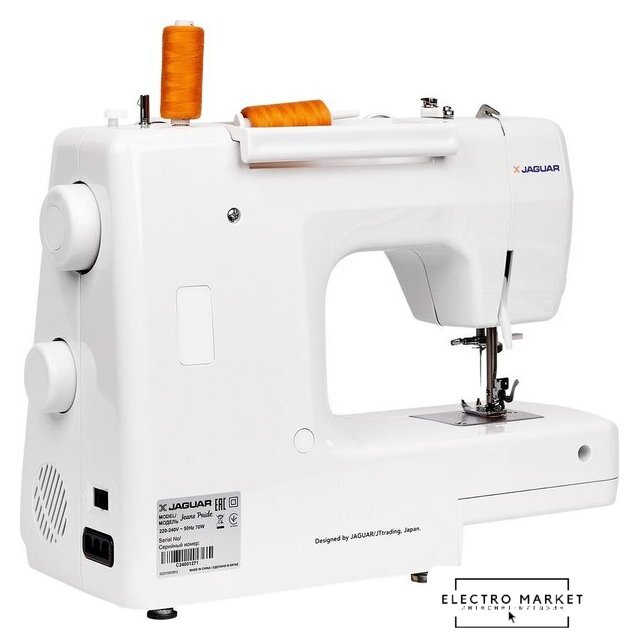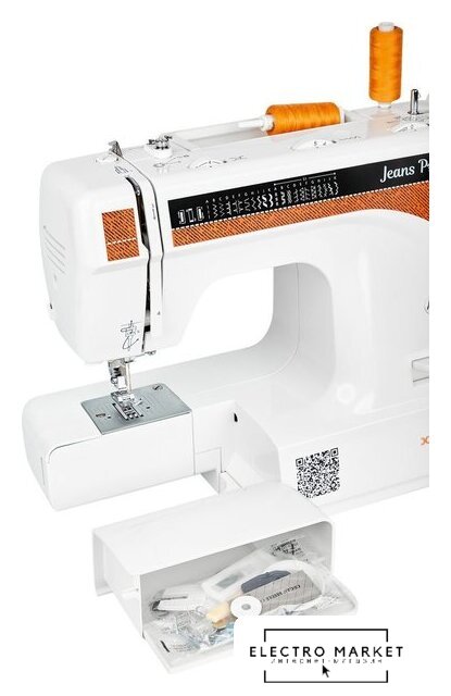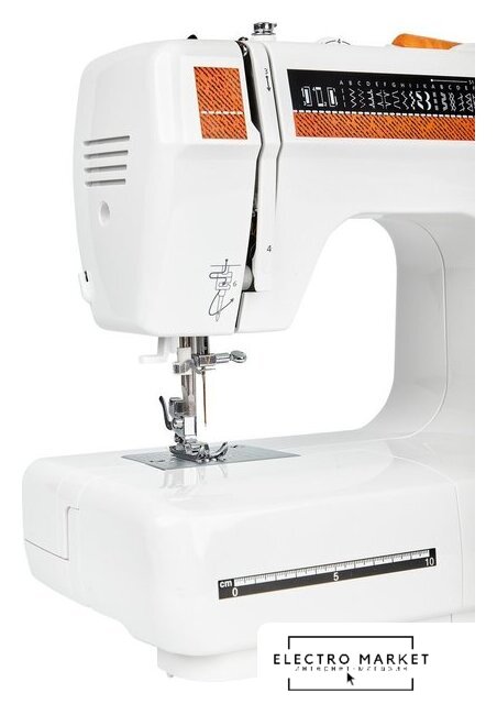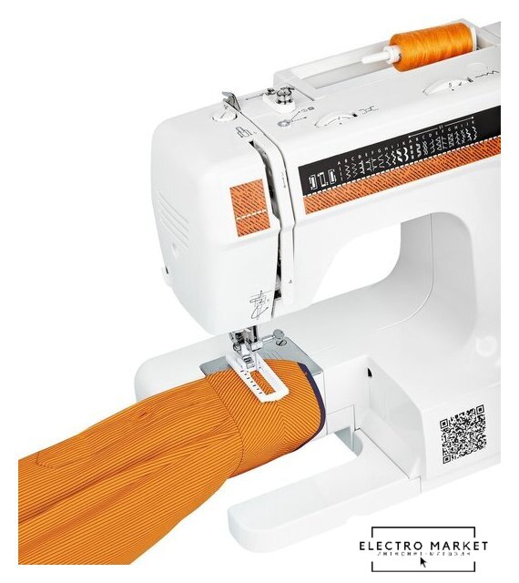 электромеханическая, вертикальный качающийся челнок, полуавтоматическое выполнение петли, швейные операции: имитация оверлочной строчки/потайная строчка/трикотажная строчка