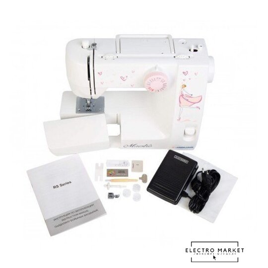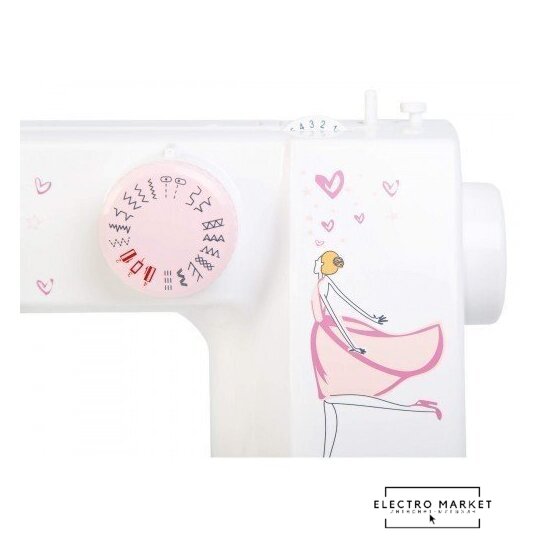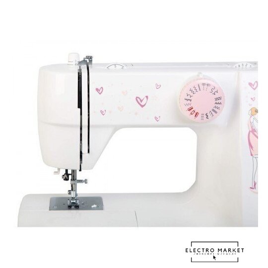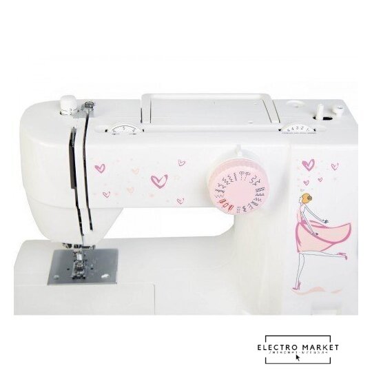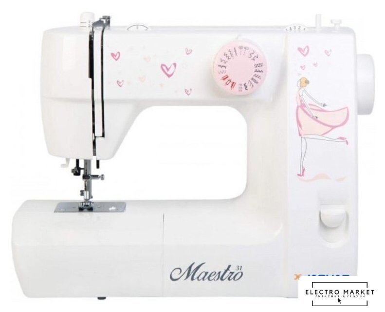 электромеханическая, вертикальный качающийся челнок, полуавтоматическое выполнение петли, швейные операции: имитация оверлочной строчки/потайная строчка/трикотажная строчка/декоративная строчка