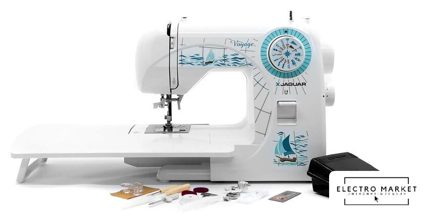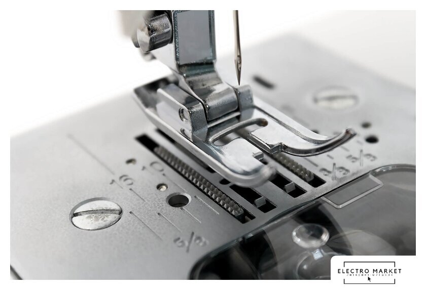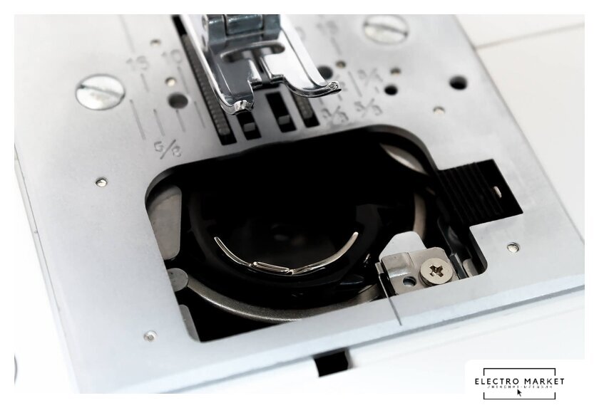электромеханическая, вертикальный качающийся челнок, полуавтоматическое выполнение петли, швейные операции: имитация оверлочной строчки/потайная строчка/трикотажная строчка/декоративная строчка