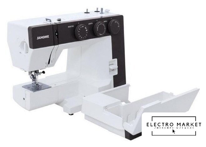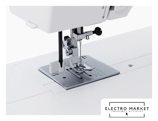 электромеханическая, вертикальный качающийся челнок, автоматическое выполнение петли, швейные операции: имитация оверлочной строчки/потайная строчка/трикотажная строчка